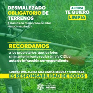 Recordamos a todos los propietarios que el desmalezado de terrenos es obligatorio, especialmente en esta época de alto riesgo sanitario.Los propietarios que aún no lo hayan hecho, deberán poner sus