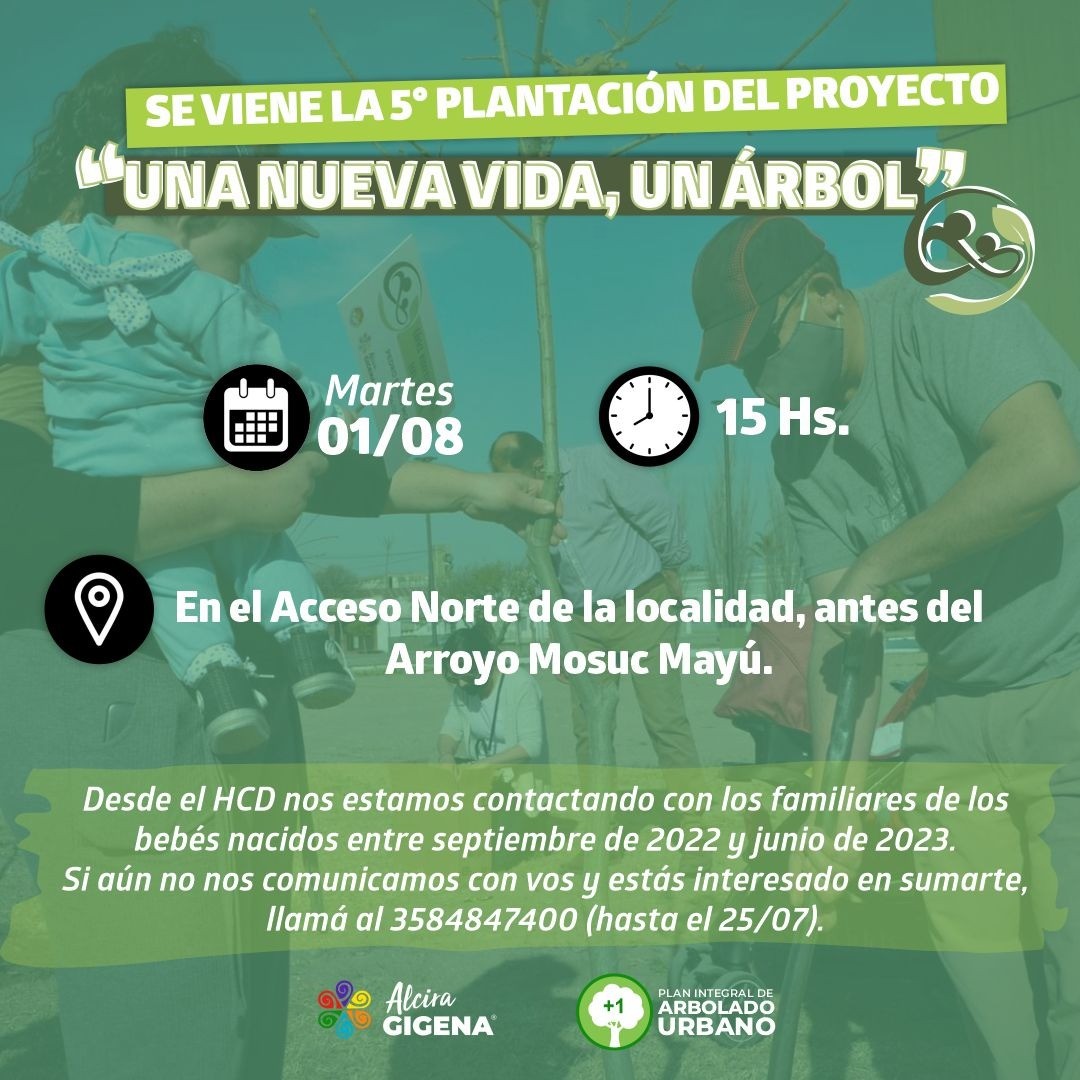 El Honorable Concejo Deliberante está organizando la 5° Plantación dentro del proyecto «Una nueva vida, un árbol»