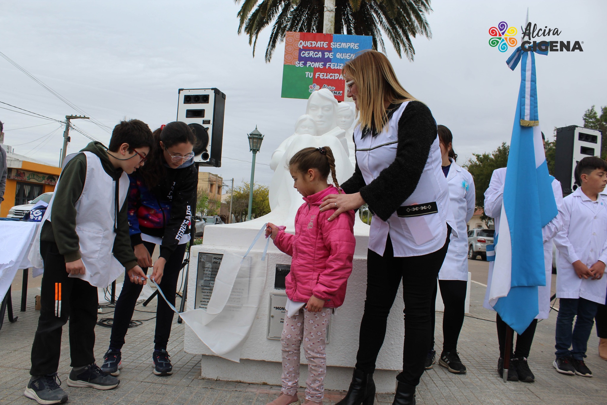 La obra creada por el artista Ángel Vieyra, fue impulsado por un grupo de jóvenes alcirenses que conformaron la Cámara Junior con el propósito de embellecer la localidad y homenajear a las madres. Por tal motivo, familiares del artistas y ex miembros de esta organización, formaron parte del acto desarrollado el miércoles 18 de octubre en Alcira Gigena.