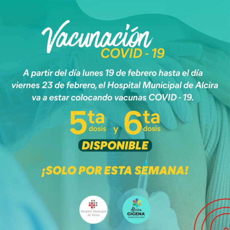 Informamos que a partir de hoy lunes y hasta el viernes 23 de febrero, estamos realizando la vacunación de quinta y sexta dosis contra el COVID-19 en nuestro Hospital POR LA MAÑANA.