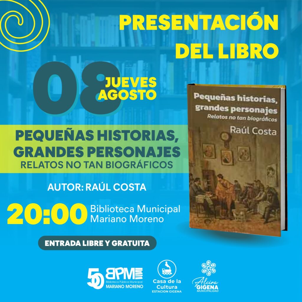 Este jueves 08 de agosto a las 20 hs, en la Biblioteca Pública Municipal Mariano Moreno, tendremos como propuesta la presentación del libro «PEQUEÑAS HISTORIAS, GRANDES PERSONAJES» Autor: Raúl Costa. […]