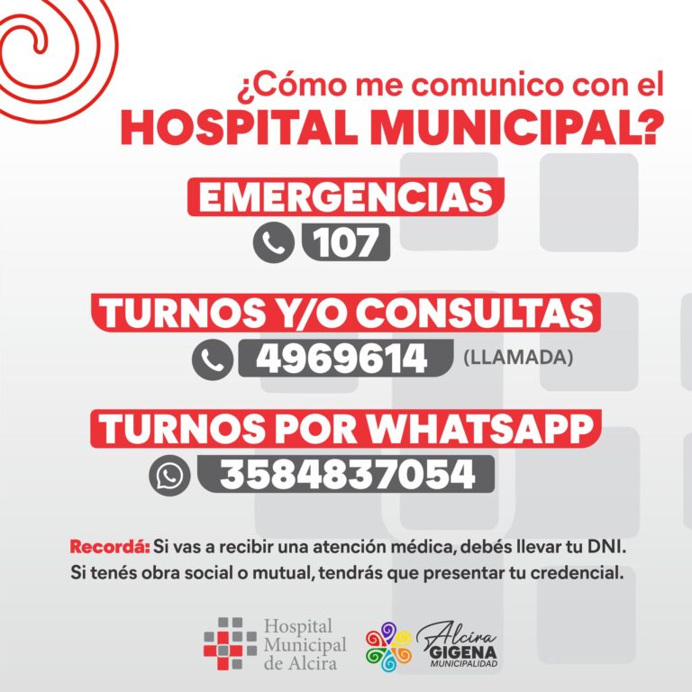 Para gestionar turnos por WhatsApp: comunícate al 3584837054