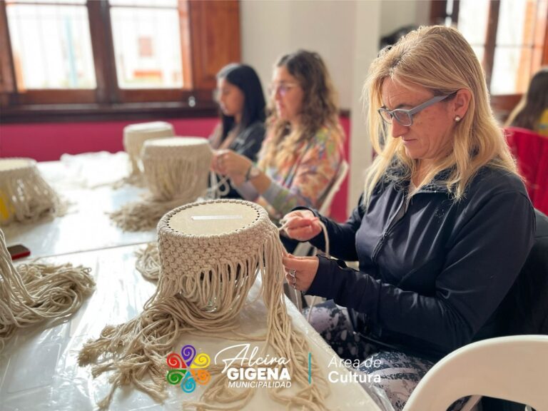 En la Casa de la Cultura, junto a la profesora Sofía Fernández, los participantes aprenden distintas técnicas de anudado aplicadas al diseño textil, explorando formas, texturas y composiciones que reflejan la riqueza del trabajo manual.