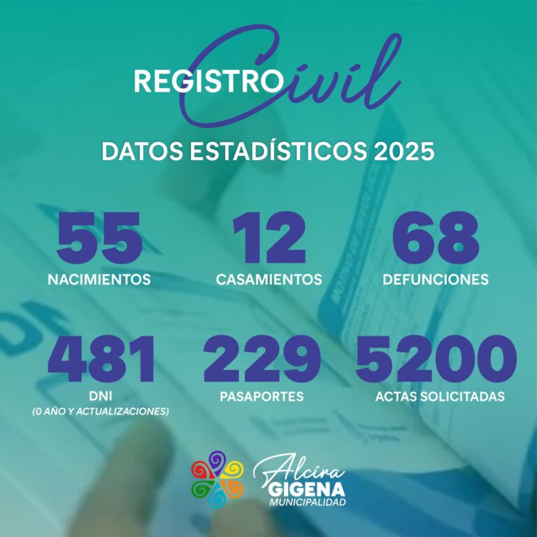 Desde el Registro Civil de Alcira te compartimos datos estadísticos correspondientes al año 2025.