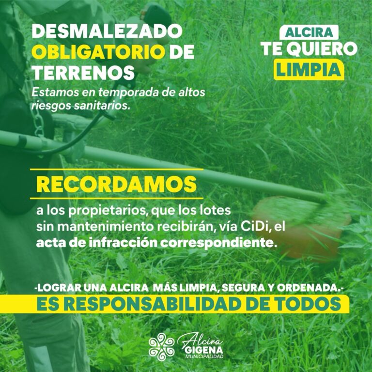 Recordamos a todos los propietarios que el desmalezado de terrenos es obligatorio, especialmente en esta época de alto riesgo sanitario.