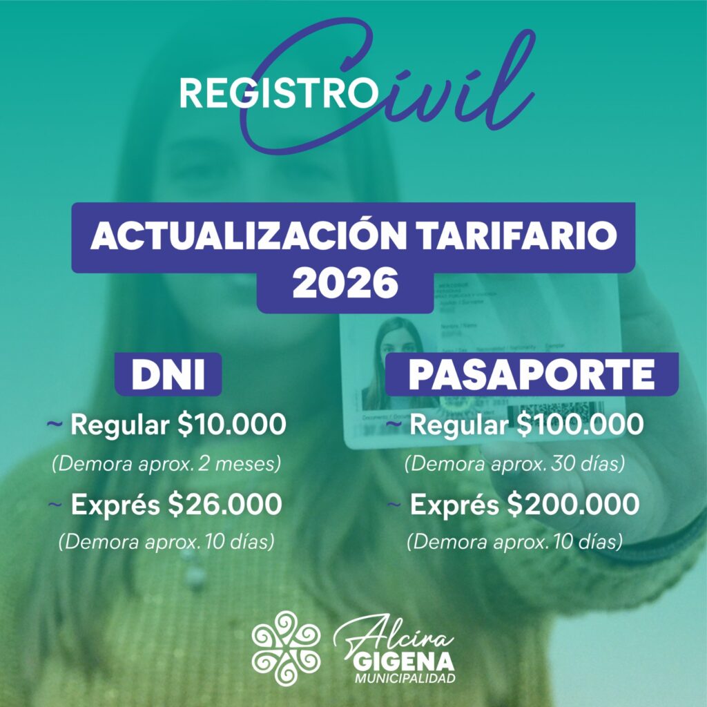 Comunicamos los nuevos valores para la tramitación de DNI y Pasaporte. Podés realizar tu trámite en modalidad regular o exprés, según tu necesidad.